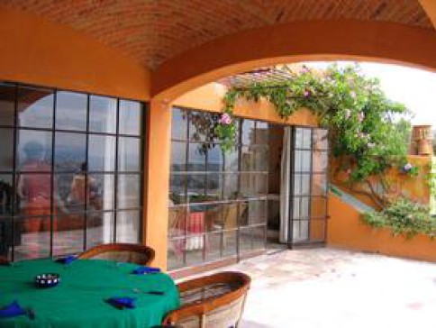 Our home is in an area that overlooks San Miguel and is a 9 minute walk downhill to the center through old San Miguel. My husband, an architect, designed this house as well as the original layout of the area with his architectural partners. I am an interior designer and colorist and the 2 of us put the interiors together.