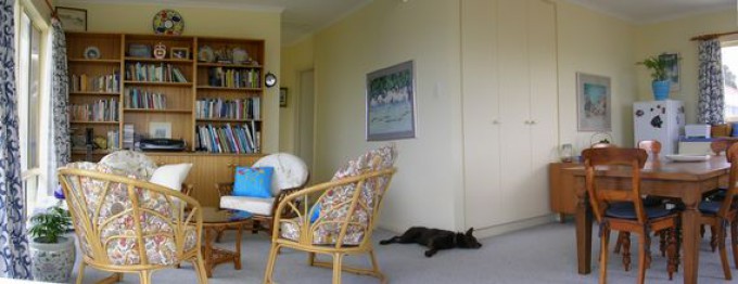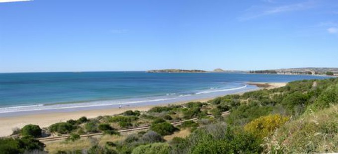 Our holiday home is in a quiet area, has panoramic coastal views and is within a 200 meters of the lovely safe, quiet swimming and surf beach(photo taken close by). If you like a quiet relaxing beach holiday or enjoy coastal walks then this would suit. Two golf courses are very close by plus tennis courts, bowling and croquet courts. There many picutresque beaches nearby, scenic walks and a wildlife park.