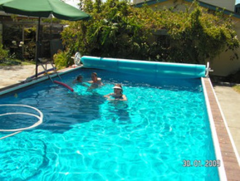 Our house is set up for relaxed holiday living, has balcony views, all modern amentities including a pool. Three bedrooms downstairs, all with double queen size beds and one with an en-suite. Other bathroom is also downstairs. Only showers, no baths. The kids room has a double bed with an upper bunk plus a single bed . One double bedroom is upstairs. Kitchen with all amenties is downstairs. Two dining areas, upstairs and downstairs and similarly two lounge areas. Plenty of room for all. Undercover carport and pretty garden. In a very quiet area and within 1km of main shopping area. No phone or internet connected.