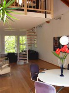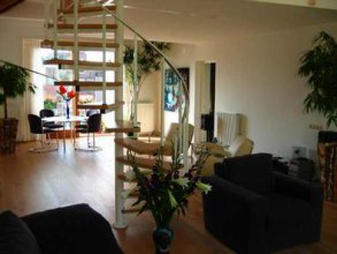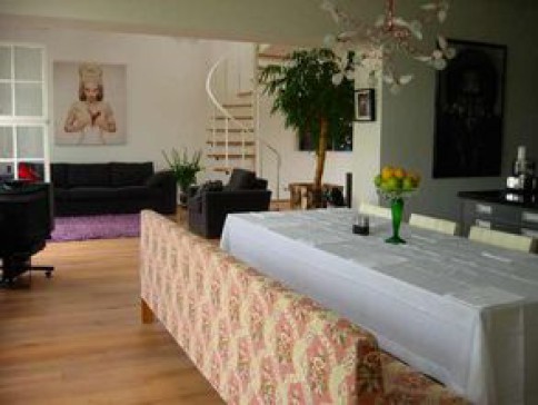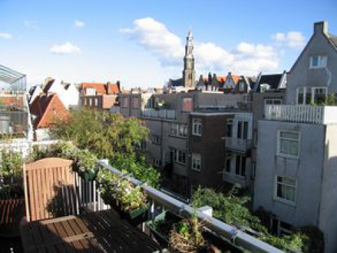 Amsterdam is a incredible beautiful historical city, and so are most of the houses; very steep staircases and small apartments. Compared to this my apartment of 150m2 is very big. It is situated in toplevel of an old building, and has a hight of 6 meters, with a historical wooden roof. At the canal side (front) side there are seven! windows. At the backside there is a big glassdoor, facing over the old rooftops and a famous curch.  There is an open kitchen with a dinner table that can be used by 10 people. The bedroom has an balcony and you sleep in a kingsize Hastens bed. A spiral staircase gives you acces to the "entresol" with an extra bed and leeds to the roofterrace, overlooking Amsterdam.