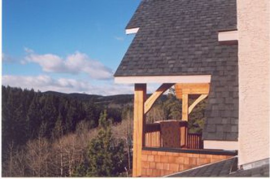 Our house is two years old, the style is a hybrid of timber-frame and Arts and Crafts, perfect for our wooded area. Wood floors, modern kitchen with gas range, dual ovens etc., living room w/ fireplace, the best part is the covered deck w/ BBQ area and (for those chilly mountain evenings) an infra-red heater. Master bedroom w/ kingsize bed, ensuite and a deck w/ mountain views. Pete's very large bedroom has three twin-size beds (a bunk and a single) and lots of toys. We are on a treed 4-acre lot beside Kananaskis Park. In the immediate area there is hiking and mountain biking trails (2 adult and one kids' m-bikes). 10 minutes to Bragg Creek village, 45 to Calgary, 90 to Banff. We can provide info on many local activities.