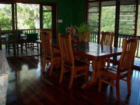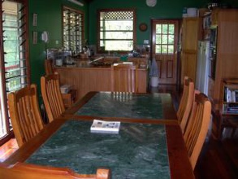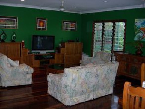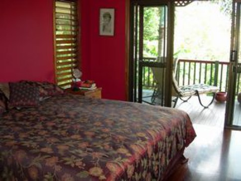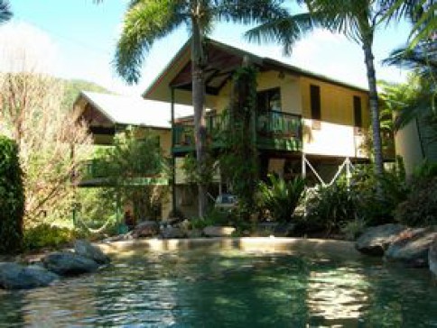 15 mins from Port Douglas, up a steep driveway, nestled in it’s own 3½ acres of forest in a garden of palm trees,colourful plants & free form pool, is the Tree House, a unique little hideaway. Upstairs is an open plan livingroom & kitchen with cathedral ceilings, polished wooden floors, & glass louvers and balconies which look out onto the forest.Up a few steps is a bedroom, balcony & ensuite bathroom. Downstairs is a 2nd bedroom with glass doors onto the terrace,bathroom, study,laundry.A covered area with pooltable,dart bd & bar fridge is near the swimming pool. Do the Great Barrier Reef,4 Mile Beach,the Gorge, Daintree Rainforest, Cape Trib, Skyrail, Tablelands, fishing, golf, riding, rafting, ballooning,fine dining & shop.