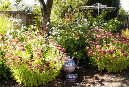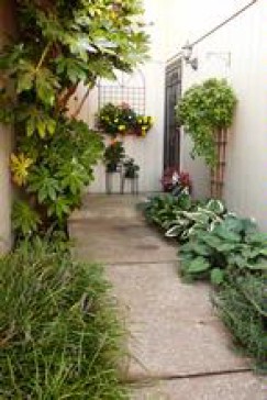 The garden has shade trees, flowers, a fountain and a small vegetable garden.  There is a deck for lounging, tea and coffee drinking or perhaps a glass of wine.  The patio has a table with umbrella and barbecue.