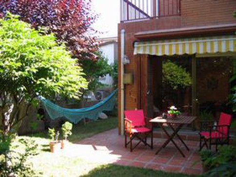 3-storey townhouse, lots of light, garden (hammock and bbq), terrace on each floor. Modern & well cared-for. Ground floor: well-equipped kitchen, split level living-dining opening to garden; 1st floor: double bedroom, study, bathroom (bath&shower); 2nd: bathroom, twin bedroom with piano, computer, internet.