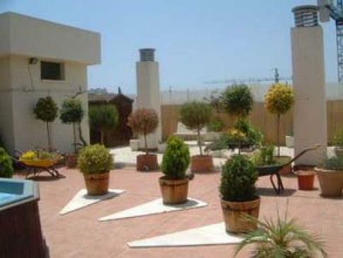 Our apartment is a penthouse, very private, 5th floor with a huge roof garden of over 200 square metres with heated jacuzzi, sun beds, hammock, shaded terrace with bar, deck chairs, etc.. The penthouse has 3 bedrooms and two bathrooms and also a large side terrace. The lounge is large and the kitchen is equipped with American frig. Smeg oven, dishwasher and all modern gadgets. There is a washroom with washing machine. Safe parking spot in private parking area. Gated community, very safe.