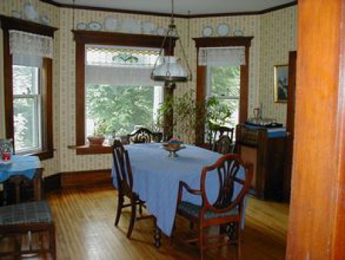 3-story Victorian home with back yard bordering the Saxtons River. Two living rooms, dining room, breakfast room, deck and porches. Four bedrooms. Computer and internet access. Back yard is spacious with grill, swings, sandbox, and playhouse. Small "above ground" pool.