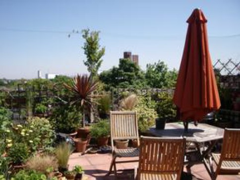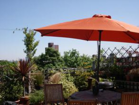My flat is over two floors with large rooms, wifi, cable TV, DVD etc. There are three flights of stairs. Final flight leads to a private roof garden with BBQ, picnic table, so at the end of a long, tiring day exploring, you can sit down and relax with a drink while enjoying the London skyline. There are two bedrooms, one with a double bed & one with twin beds.