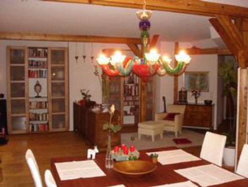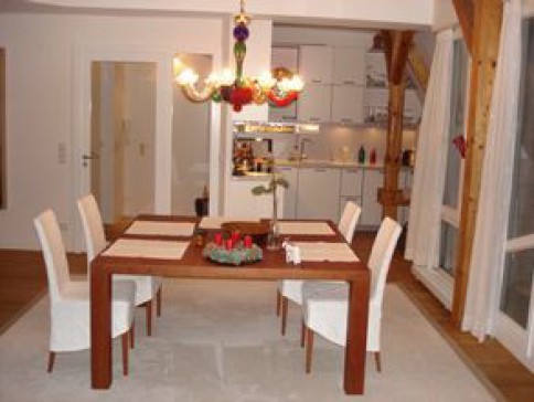Our 175 sqm Penthouse (4 th. floor) is located in a quiet area of Berlin, close to Kurfürstendamm (10 Minutes with local) and Berlin Mitte (20 Min. with local). Freshly renovated and new equipped, the main living space (110sqm) with lot´s of wooden and glass structure (sunny all day) has a dining, sitting, tv/music and a little office space,also an open kitchen and a little guest space and a terrace (13sqm) The private space, lying to the garden, has two sleeping rooms and a beautifull bathromm. Very quite above the roofs of Berlin we are living in a very friendly house with neighbours, who still know each other.