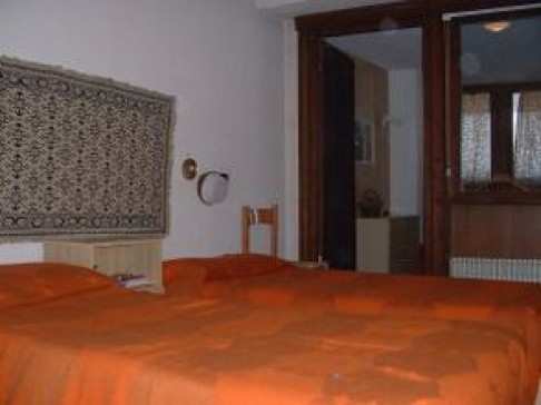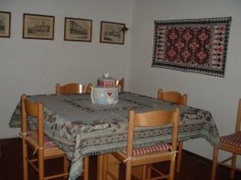 The big sitting and dining room has a big leather sofas and a big table with 8 chairs and is equipped with television and VCR. This large room overlooks the valley and the mountains and gives access to the terrace.
