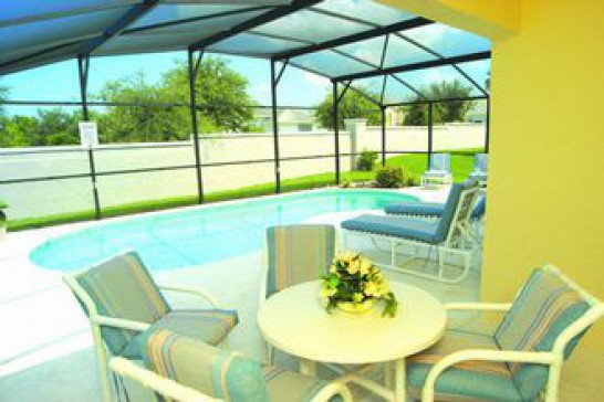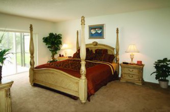 5 bed Luxury Villa located on Golf Course, 15 minutes drive from DisneyWorld and all major theme parks in Florida. Sleeps 10 people w/one master ensuite, one double room, two twin rooms and one kids room with bunk beds, complete with TV, Video and video library. Hi-speed wi-fi internet connection. Main large living area with 32" HDTV, Video/dvd and HiFi. Formal dining area, w/separate b/fast area seating. Master bedroom has w/i wardrobe, large bath and sep shower.