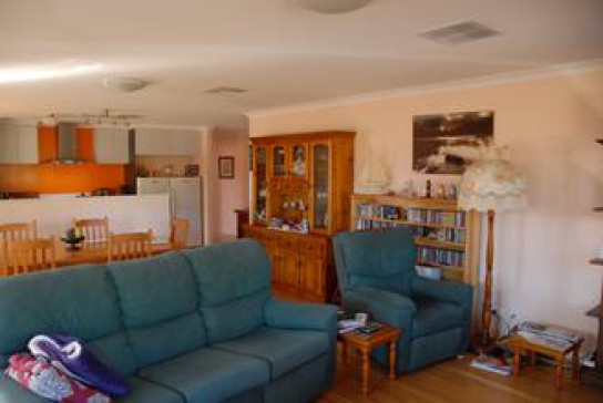 Our home is now 11 years old, has 4 bedrooms, and two bathrooms and is located within the Resort Facility of Timbers Edge in Dawesville. Our home has two main separate living areas and 2 outdoor patio areas. The main living area consists of an open-plan family sitting area (two recliner rockers and a 2-1/2 recliner sofa), a dining table and chairs and the modern kitchen. At the front of the house we have our "library/quiet room with 2 more recliner rockers and an easy chair. Both bedrooms have Queen sized beds, the master having the en-suite and toilet. The main bathroom, with bath and shower is next to the guest bedroom. At the rear of the house the 3rd bedroom has been made into our study. The other small bedroom has been made into our hobby room.