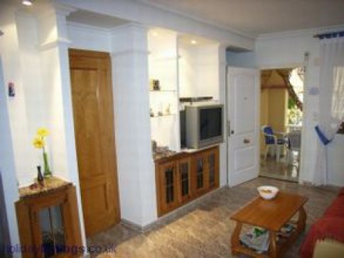 Semi-detached house facing onto communal pool, park area with a terrace to the front. Lounge / dining room, 3 seater couch, armchair, coffee table, dining table and 4 chairs. Air Con.