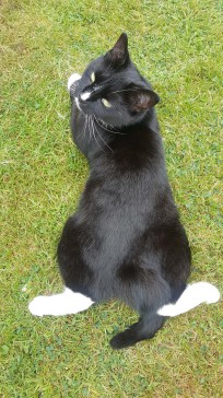 We also have an adorable, small cat Brian who is very friendly and needs feeding preferably twice a day. He is independent, comes and goes via his catalpa, but likes to play 'string' and to have his tummy tickled. He is extremely sociable and good with kids, never scratches.
