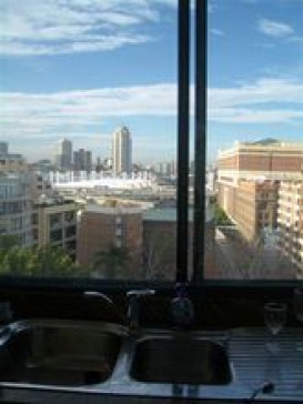 Our apartment has some water views and downtown city views [main photo taken from 2nd bedroom balcony]. There are four balconies altogether [one off kitchen, lounge and both bedrooms], large lounge / diner, kitchen, downstairs toilet. Upstairs are three bathrooms and two double bedrooms - one with ensuite with corner spa bath. There is also a communal gym and indoor swimming pool available for use.