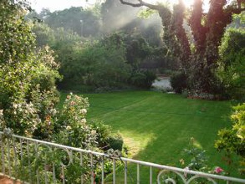 Spacious and luxurious home with secure swimming pool and tennis court on 1 acre with beautiful garden in prestigious and centrally located suburb of Johannesburg. Two large bedrooms en suit; additional double bedroom and bathroom. Spacious living room, dining room, eat-in kitchen, family/TV room with full home entertainment setup and 50 inch plasma TV and game consoles. Beautiful covered patio and barbecue area; pool terrace, trampoline and play area for children.