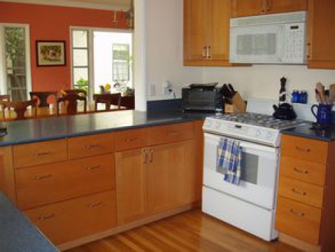 Our house is a lovingly cared for 1939 bungalow. It has a small back garden with BBQ. Master bedroom has a queen (5') bed. Child's room has twin size trundle beds. Third room has a convertable fouton couch (queen size - 5'). Two bathrooms, one with tub/shower, one with shower. Good size living room, dining room and kitchen.