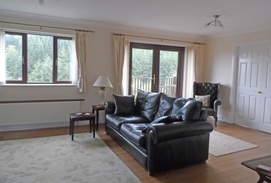 Our home is a spacious, modern detached house quietly situated beside a golf course. We have two double guest bedrooms, one with ensuite shower room and the other using the family bathroom. The house is reverse level so we have our sitting room, dining room and kitchen with dining area upstairs all with access to a full length south facing balcony with view of the garden, woods and golf course.