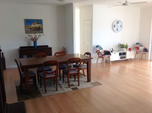 Our house is a large comfortable home in a quiet street. We have a 14 metre pool and the property is on 1.6 acres of sloping land. The views from the top deck are spectacular and there are native birds in abundance. We are close to the main business centre of Cooroy which has full shopping and business facilities plus a first class library.