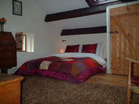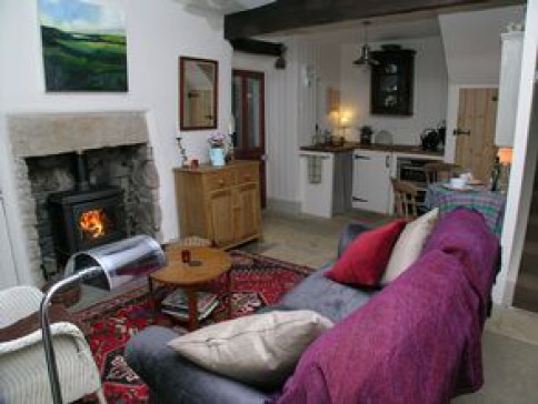 The single room on the ground floor has wood burning stove (also gas central heating). The kitchen is small, but well equipped.