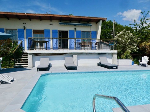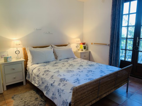 A blue shuttered villa with a truly amazing view to the Pyrenees. The villa has a pool and is located above the French Book Town of Montolieu near Carcassonne which has literature & art related events all year round. Carcassonne itself is a World Heritage Site with the marvellous walled city offering an insight into Cathar mediaeval history. The City was featured in the TV dramatisation of Kate Mosse's novel "Labyrinthe". There is superb walking literally on the doorstep, many vineyards to explore and ski-ing in the Pyrenees is about 90 minutes away. In the warmer months the heated swimming pool is lovely! As is the hot tub.