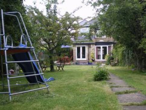 Contemporary decor with wood and tiled ground floor and direct access to large child-friendly garden. Downstairs: open-plan lounge/dining room/play room, kitchen, garden room with double sofa bed, and cloakroom. Three bedrooms upstairs: one adultsdouble, one with children's bunk beds and one children's single.