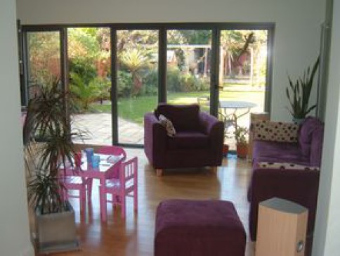House recently extended with large ultra modern open plan kitchen and living area opening out onto patio & BBQ area. West facing landscaped garden. Main bedroom has on suite bathroom. Two further twin bedded rooms one ideal for girls who like pink! Downstairs front TV/living room with double sofa bed. Off road parking in leafy residential street.