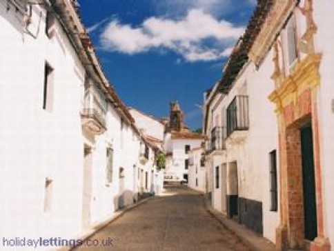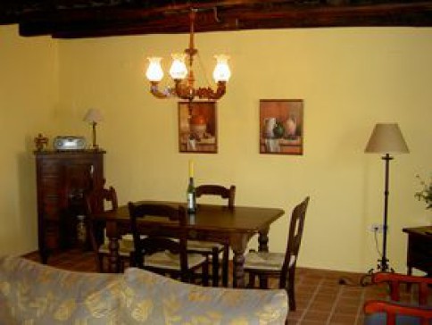 Set on the edge of the quiet village of Castaņo del Robledo in the heart of the Sierra de Aracena. The area is famous for its cork and chestnut trees, wild mushrooms and excellent serrano hams. The two bars in the village square are just a minute away, as is the village swimming pool, but the views from the house are of fields and forest.