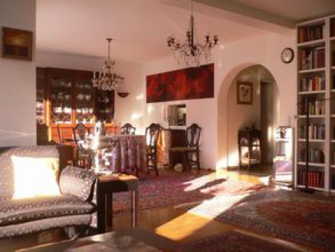 Our house is situated in a dead-end street; it has a big living room, kitchen; 2 bathrooms and a separate toilet; 1 big bedroom and one guest room, a study and an artist's room.There is a garden with two terraces.