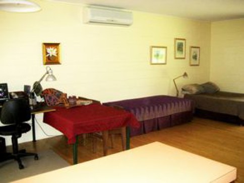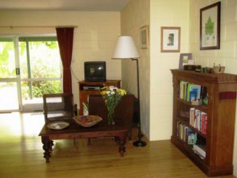 Spacious, uncluttered 1 bedroom house on 30 acres near Kuranda, the village in the rainforest. Warm climate. Open plan living area/kitchen with bamboo floor, digital TV, DVD player, day beds, gas stove & air con. The bedroom is light & airy with a queen size bed & tatami mats on the floor. Covered outdoor areas front, back & side.