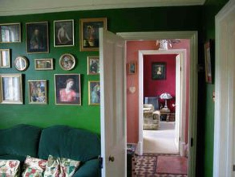 The house decor is interesting and warm, with rich colours and lots of pictures and books.