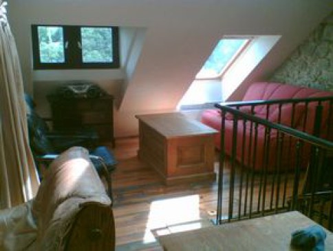 A central spiral staircase leads down to a cellar/bar and up to the lounge and dining areas. (TV and DVD in lounge)