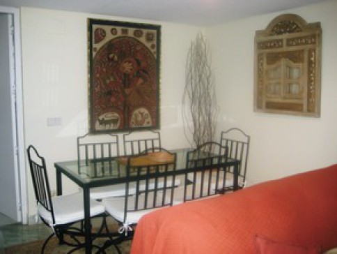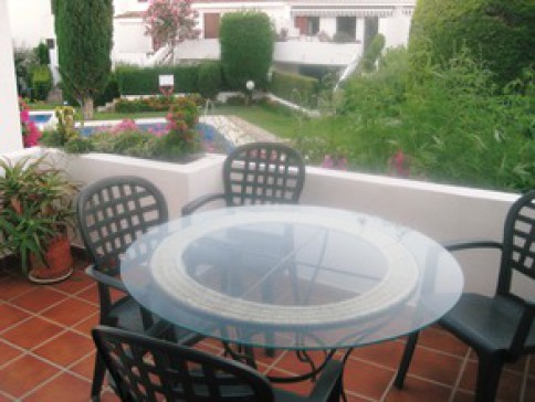 Town house in quiet gated community close to sandy beach. Lovely terrace overlooking pool and garden, with sunny aspect all day. Near attractive village of Cancelada with several very good restaurants and bars. Up market town of Marbella 20 mins. away, also famous Peurta Banus near, with fabulous shops.Many top class golf courses in the area. 45 mins from Gibralta,nearest airports Malaga [45 mins] or Gibralta.