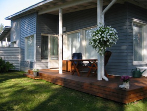 The bungalow is practically new, with a private sauna, a fireplace and a little garden. Secluded, yet having easy access to town.