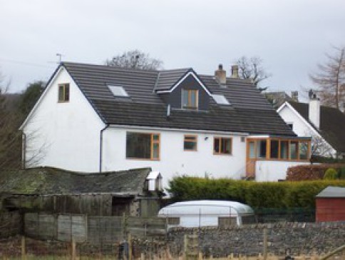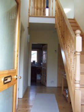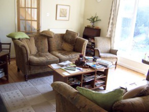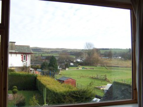 Our home is situated near the edge of town overlooking countryside, yet is only 10 minutes walk from the town centre. It is a 1970s property (approx 1300 sq ft). On the ground floor is a sitting room, a dining kitchen, bathroom, small piano room/cloakroom, master bedroom and morning room/4th bedroom; on the 1st floor are a shower room and two large rooms each 18ft x 14ft: one a family bedroom, and the other a study/bedroom.