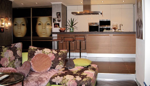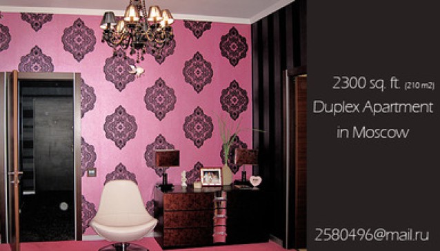2300 sq ft (210m2) duplex apartment, with an outstanding modern design based on a 24-25 floor of a 25 storied building in a heart of Russia - Moscow. 2 bedrooms, 2 bathrooms, 1 dressing-room, 1 laundry room, 1 study room, 1 kid's room with a 2-level bed, huge living-room together with kitchen. Panoramic glazing. Hoven, CoffeMachine, steam-cooking chaimber - all MIELE. Dishwasher, grill, fireplace, washer, coputer with an ultra-high speed internet connection, WiFi, 3 TVs (one of it is in bathroom). Maid once a week. 1 parking space with the new Jaguar XF.