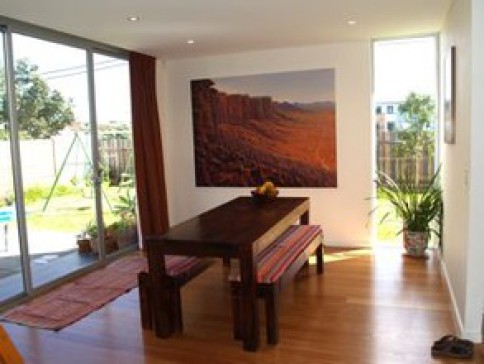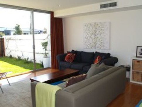 Our house is a large newly built 'townhouse- the Australian term for a a house which is part of a block with communal parking, gardens etc. It is the corner house, with its own entrance off the street, so feels pretty much like a detached house. It has big rooms, & a very large lawned garden (by Sydney standards) with gas barbecue.