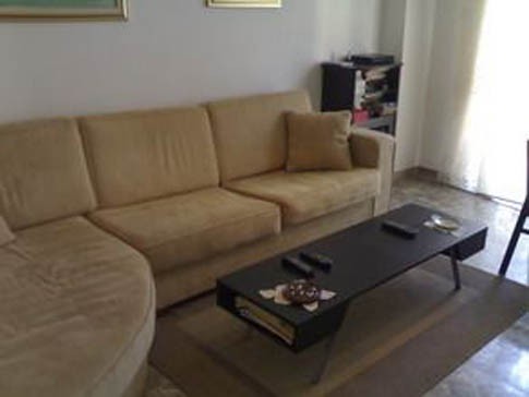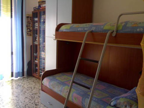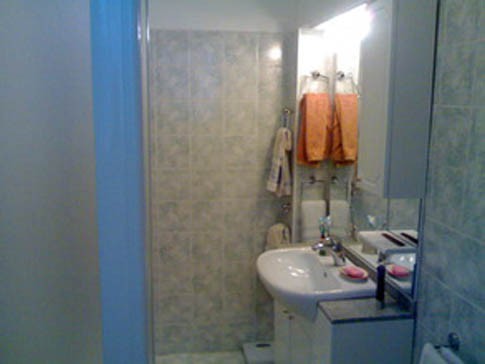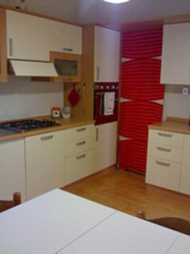 We live in a small flat (90 square metres) on the third floor of a quiet block of flats built in the 70s. In the flat there are two bedrooms, one with a king size bed and an air conditioner the other one with bunk beds and a big sun tent on the balcony. In the kitchen there is everything you need to cook, a TV and a dishwasher too. The washing machine is on a small balcony. In the living room there is a sofa, another TV, a table, chairs, some cupboards and an air conditioner. Both the bedrooms and the living room have got a balcony. Finally there is a shower room.