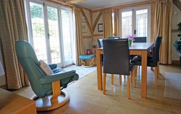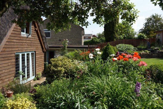 The property is a four-hundred year old thatched cottage which retains its cosy character - lots of beams and 2 fireplaces with cast iron stoves. The garden is particularly delightful in summer with space to barbeque, relax and play. The cottage offers comfort and modern facilities. The hall with its inglenook fireplace and wood-burner is cosy in winter as is the living room. The garden room is ideal for daytime relaxation and more formal eating. the kitchen is where we enjoy most of our family meals. There are two staircases, one to the master bedroom with its own bathroom and dressing area, the other from the kitchen to two further bedrooms which use the downstairs shower room. We have a car and if appropriate are happy to arrange insurance for you to use it.