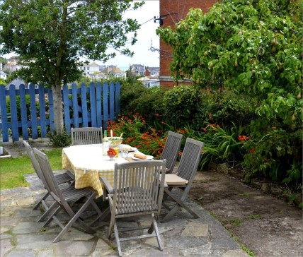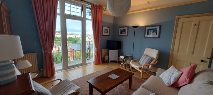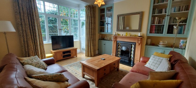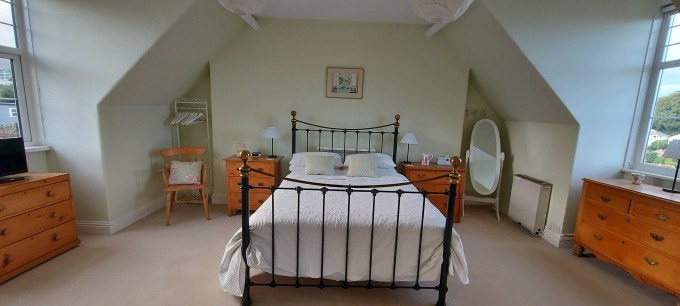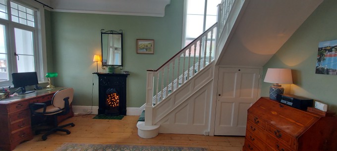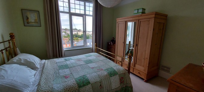 Large semi detached Edwardian house with sea views in the charming seaside town of Teignmouth. Lounge, dining room, breakfast room, kitchen and toilet on ground floor. 3 double bedrooms (one ensuite), sitting room with sofa bed, bathroom and shower room on first floor. Large attic bedroom, study with sofa bed, toilet and utility area on top floor. Up to 8 people can be accommodated comfortably, with room for extra guests for a night or two. Sunny south facing paved area at the side of the house. Parking for 2 or 3 cars on driveway.