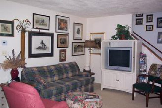Our house is a modern salt-box styled Cape Cod with 1st floor master suite (with private bath), king-sized bed, color TV. Two bedrooms upstairs, one with queen bed, the other with queen bed plus single bed and child's cot. Bath with shower adjoins.