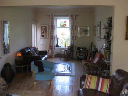 A beautiful, semi-detached, 4 bedroomed, sandstone, traditional house in central Ayr. Upstairs is the master bedroom with a king sized bed. Also 2 single bedrooms (although both can have twin beds if required). Also upstairs is bathroom. Downstairs is 4th bedroom, also a twin room. The living area is open plan, has a wood burning stove and TV with Sky Sports. The kitchen is old-fashioned with a large cooker and access to conservatory and toilet/shower room. The Garden is large, with decking/seating, lots of fruit trees/green house and has full sunshine until late pm in the summer. Off street parking at the front.