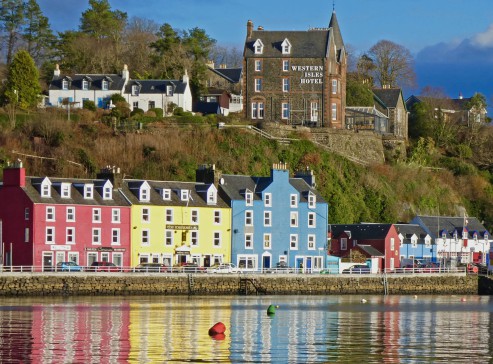 The Isle of Mull is off the West Coast of Scotland near Oban and famous for its scenery, and wildlife. We live a mile from the pretty village of Dervaig, 25 min drive from Tobermory and 2 hours from Iona. There is a ferry service from the main port of Oban to Craignure, the latter is 25 miles away.