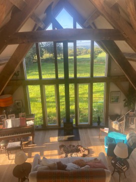 New build timber framed house with amazing views out over North Devon and the beautiful Taw and Mole river valleys. House has been architect designed and has beautiful spaces and a lovely feel (we're biased). It's also warm and comfortable and well equipped for being cosy with log burner in winter or enjoying the outside in summer. Accessed through its own wood, guests can enjoy the light, the stunning setting and garden plus beautiful walks on footpaths from the house and further afield. Wild coast, Exmoor National Park, choice of country pubs and award-winning country market (South Molton) all within easy reach.