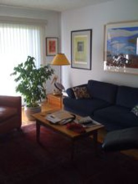 Near San Francisco and Berkeley, this 2-bedroom--one used as a study, 2-bathroom condo (designed by William Wurster) looks out on gardens. It has a modern kitchen with plenty of cooking equipment. It`s a comfortable living space in which to relax. There are 4 swimming pools, tennis courts, pleasant landscapes, and easy access to Napa and Sonoma wine areas, SF, Marin county and more.