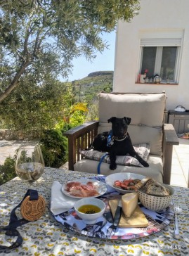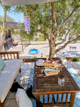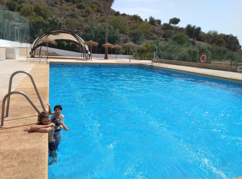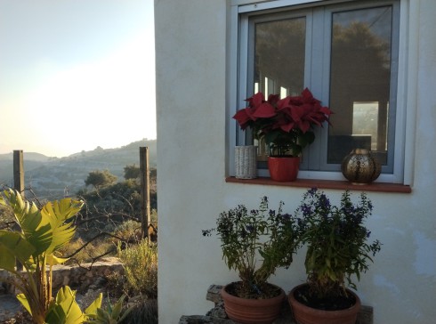 My house is a small renovated cortijo. There is open plan living area, 2 bedrooms and a bathroom. Sleeps 4, and I have sofa beds if needed. I have quite a lot of land with almond and olive trees (you certainly won`t need to buy any olive oil!). Just outside the house I have a lovely terrace, and two more terraces down some steps. One hosts my summer chill area with sun loungers and a small rigid sided pool. Unfortunately the renovation and taxes ate up my pool money, but it does the trick when you need to cool down. There is also a wooden "chiringuito", which is basically a boy cave for my son. It needs some fixing up, but there is a double bed there, TV etc.