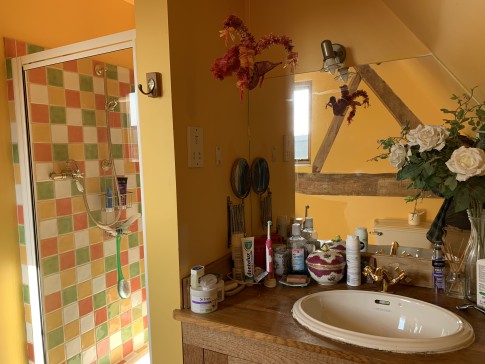 Our village has a pub, a shop, a playground opposite the house, a church, school and a tennis court.