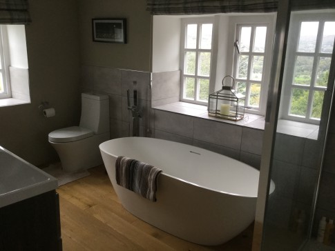 Our home is a detached three storey weavers cottage and former Sunday School. On the ground floor is a kitchen, utility room and small shower room. There is a comfortable lounge and study on the middle floor and the three bedrooms and family bathroom are on the top floor.