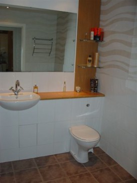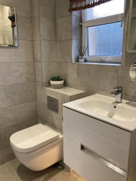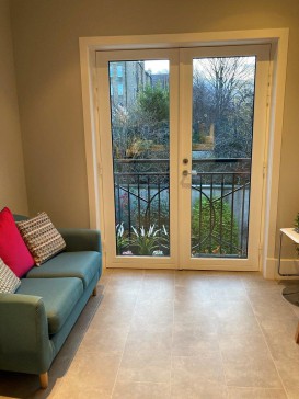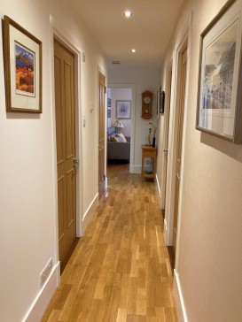 Our modern home has a bay-windowed lounge at the front, while the rear of the apartment overlooks neighbouring homes and gardens. Our newly renovated west-facing kitchen/diner is modern and light, with a little sofa and table for three to four. We have an adjacent utility room for our washing machine and small freezer. Our master bedroom has a king-size bed and modern en-suite shower. We will happily make another bedroom available by arrangement. With underfloor gas central heating, the apartment is easy to keep warm.