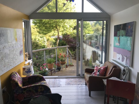 Our home is a quiet oasis in the heart of this vibrant port city, crammed with theatre, shopping and culture! Sit on the raised balcony and watch the sun set over a sea of trees and gardens. Relax in the jungle under the willow tree by the artist`s studio or watch frogs by the little pond. Two double bedrooms and bathroom upstairs and further simple artist`s studio in garden (could be a teen zone?) There is also a smaller sitting room for TV or music.