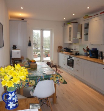 Our large apartment, spread over two floors, is in the centre of Kew village which offers the best of both worlds; only 3 mins walk to the tube station for quick trains into central London and yet a leafy urban village with a strong community feel and excellent facilities. The rooms are spacious and airy with high ceilings and large windows, furnished with a mixture of antiques and contemporary furniture and lots of books. There is a roof garden to enjoy on sunny days.